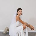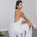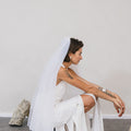 A gently elegant veil with a decorative seam at the edge.